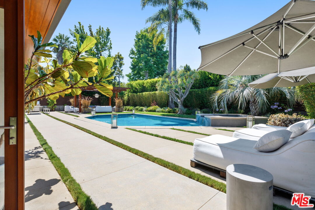 Pristine single-story gated and private contemporary home located in the prestigious Palisades Riviera. Available fully- furnished, this home is immaculately maintained with an open floor plan designed with floor to ceiling windows/doors and a seamless indoor-outdoor flow. The master bedroom suite includes a sitting/tv area, dual spacious closets, master bath with an oversized tub and outdoor shower, all overlooking a bamboo garden. Gourmet Kitchen with adjacent Family Room allows for easy access to the backyard, outdoor dining and BBQ. 5 bedrooms, den & gym complete this home and its easy-living lifestyle. Mature landscaping surrounds the property, offering resort-like living outdoor spaces with complete privacy. The yard also offers an outdoor living room beneath a heated pergola, pool & spa Shown by appointment to prequalified parties only. Security system and cameras included.